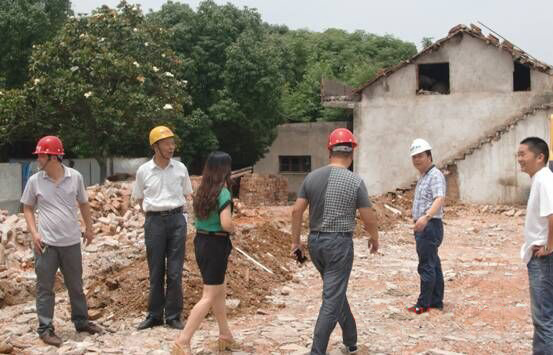 2015年6月13日周六上午,集團公司召開完周行政工作例會后,在總經理徐遠征同志的帶領下,市場管理部、工程管理部、招投標部、綜合管理部、市政分公司負責人第一站來到蔡甸大拇指廣場檢查施工現場文明施工整改情況,總經理首先肯定了上次檢查整改后施工現場明顯改觀,隨后就進一步完善圍擋角區(qū)、安全帽佩戴等進一步提出了要求;第二站來到大集張堡小學施工現場,對墻基坑深度提出了嚴格按圖紙施工的規(guī)范要求,安排由公司工程管理部對該施工工地實行24小時嚴格監(jiān)管的做法得到了校方領導的充分肯定。