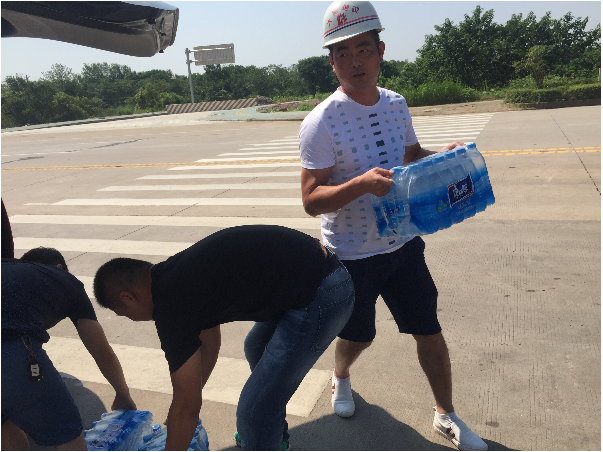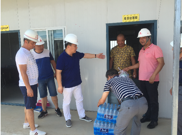 “現(xiàn)在天氣炎熱,大家要注意高溫施工安全,做好防暑降溫工作!”每到一處,公司總經(jīng)理和副總就耐心跟施工現(xiàn)場(chǎng)人員叮囑一番,同時(shí)要求相關(guān)負(fù)責(zé)人千方百計(jì)做好員工的后勤保障工作,加強(qiáng)對(duì)飲用水、食品和工地食堂衛(wèi)生管理,確保一線人員身體健康。慰問(wèn)組人員親手把礦泉水、藥品等防暑降溫用品送到施工現(xiàn)場(chǎng)人員手上,施工現(xiàn)場(chǎng)負(fù)責(zé)人一致表示,將按照集團(tuán)公司領(lǐng)導(dǎo)的要求,認(rèn)真做好施工現(xiàn)場(chǎng)防暑降溫工作和安全生產(chǎn)工作,保證工程各項(xiàng)工作的順利開(kāi)展。