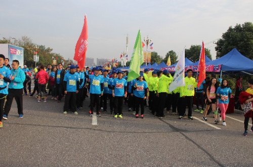 早上8點半,隨著一聲發(fā)令槍響,2016武漢后官湖半程馬拉松正式開賽!本次賽事共設兩項比賽,由2000名選手參加的21公里半馬跑和4000名選手參加的5公里健康跑組成的跑步大軍,共同圍繞著后官湖國家濕地公園,途徑風光旖旎的原生態(tài)景觀,感受最清新爽朗的江城奔跑。在人山人海的跑步大軍里有一群身穿藍色戰(zhàn)服的團隊——湖北大集建設集團有限公司員工,他們手持企業(yè)司旗,步伐有力,活力四射的點綴在武漢第一的郊野綠道上,成為后官湖深秋最亮眼的風景線!讓我們共同迎接這場盛大的賽事!
