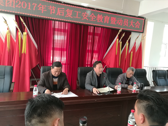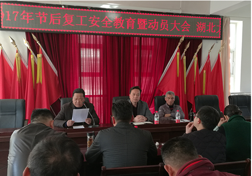2月13日下午,湖北大集建設(shè)集團(tuán)公司召開(kāi)2017年節(jié)后復(fù)工安全教育暨動(dòng)員會(huì),本次會(huì)議由集團(tuán)公司副總經(jīng)理徐家富主持,集團(tuán)公司總經(jīng)理徐遠(yuǎn)征發(fā)表重要講話(huà),聚盛置業(yè)陳兆華總經(jīng)理和全體員工出席本次會(huì)議。