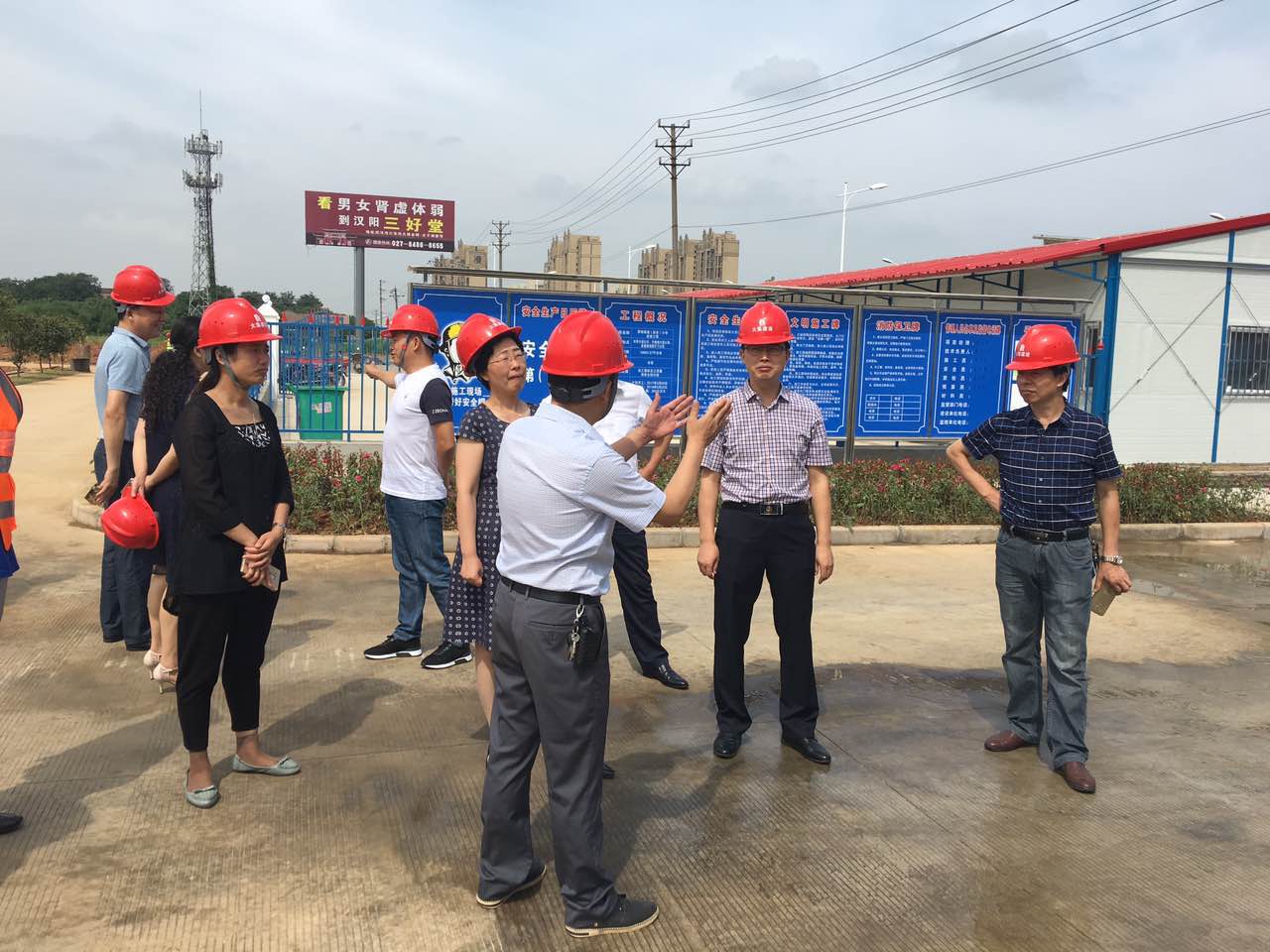6月22日,蔡甸區(qū)朱副區(qū)長、教育局李局長及大集街黨委曹書記、街工委王主任一行蒞臨南湖小學(xué)項(xiàng)目進(jìn)行考察指導(dǎo)工作,集團(tuán)董事長徐濤親自帶隊(duì),對(duì)于各級(jí)領(lǐng)導(dǎo)的考察表示熱烈歡迎并對(duì)工程進(jìn)展及管理情況作重點(diǎn)匯報(bào)。