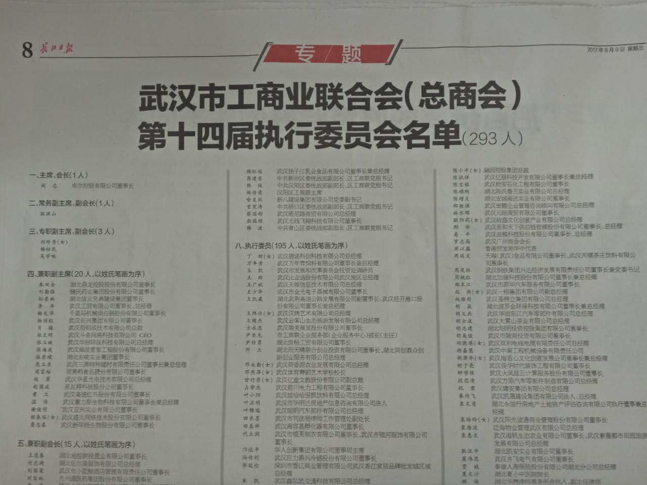 熱烈慶祝董事長(zhǎng)徐濤當(dāng)選為武漢市工商業(yè)聯(lián)合會(huì)第十四屆執(zhí)行委員