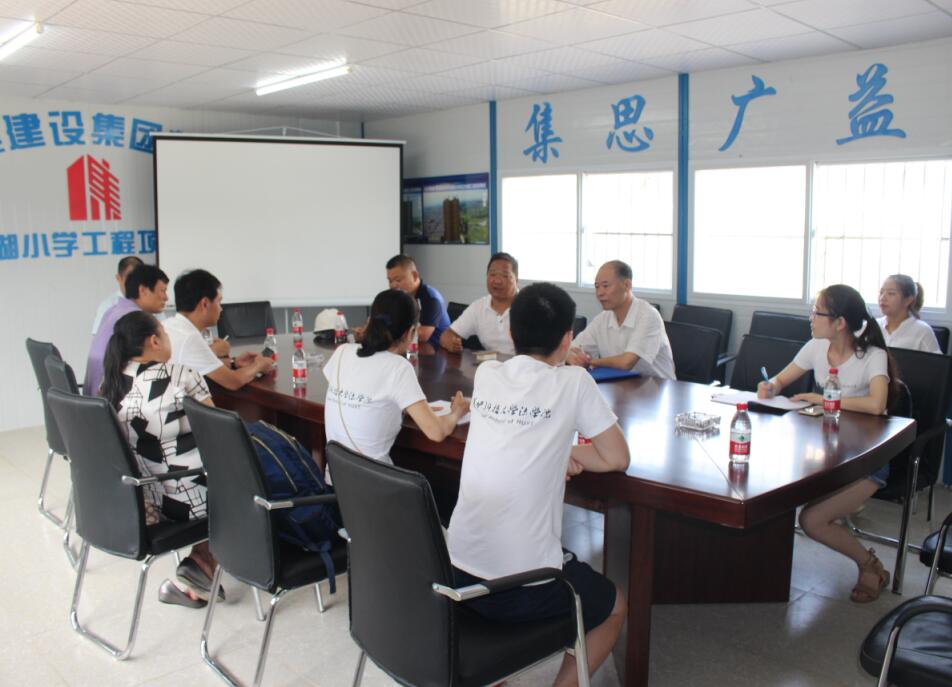 大集街工會(huì)主席劉浩首先對(duì)調(diào)研組走進(jìn)大集街表示熱烈歡迎,也對(duì)省工會(huì)聯(lián)合學(xué)校團(tuán)體組織的此類公益活動(dòng)表示大力支持,同時(shí)也解釋了選擇南湖小學(xué)項(xiàng)目作為調(diào)研對(duì)象的原因,對(duì)湖北大集建設(shè)集團(tuán)一路走來的不斷成長和完善發(fā)展表示肯定,對(duì)大集建設(shè)集團(tuán)高標(biāo)準(zhǔn)的項(xiàng)目建設(shè)和規(guī)范化的用工制度表示嘉獎(jiǎng)!