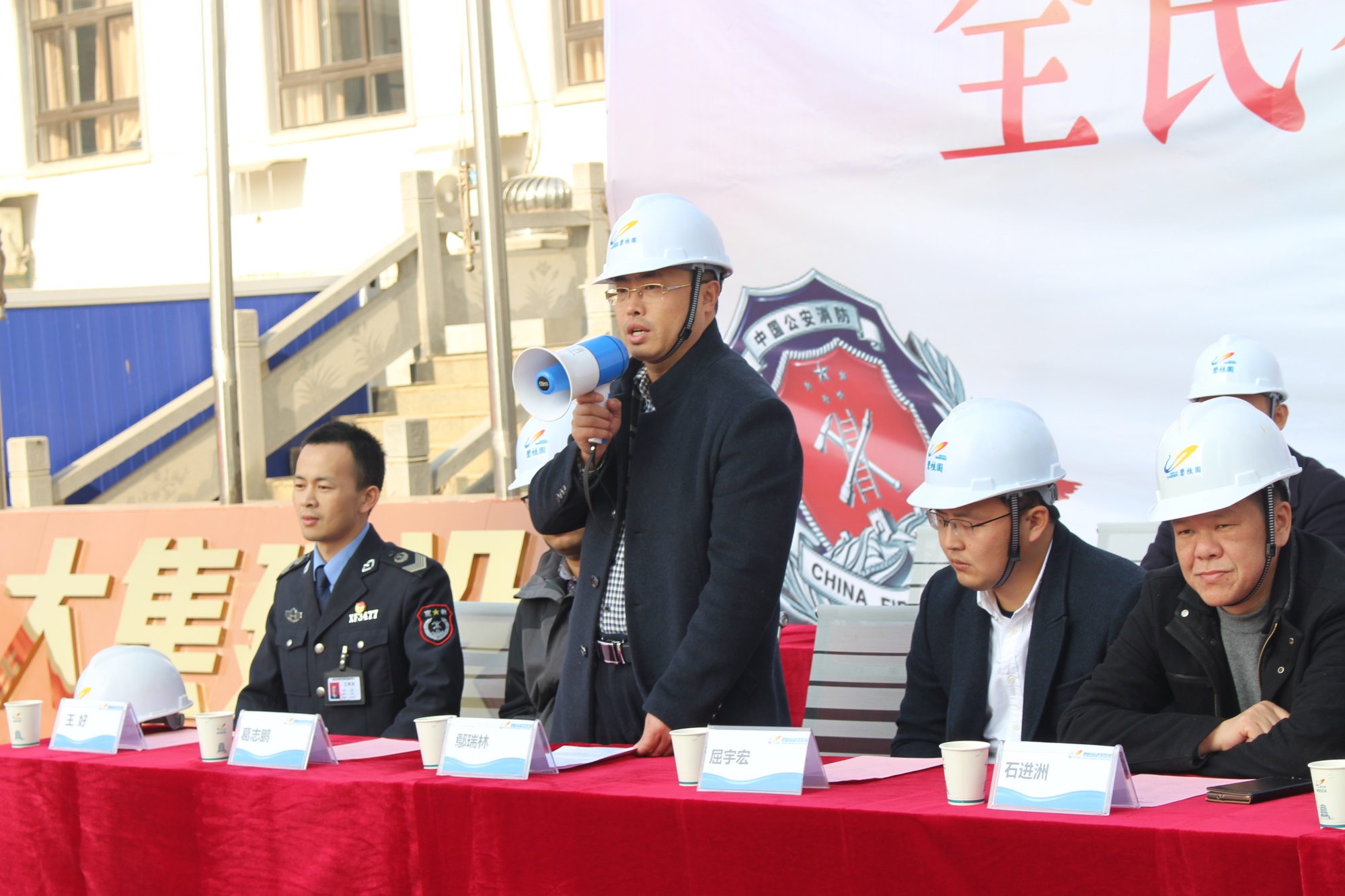 演習伊始,蔡甸區(qū)建管站石進洲書記為本次演習做指示。石書記指出,消防安全一直是區(qū)建管站重點關注的工作,秋冬季各在建項目更要做好消防安全方面的工作。