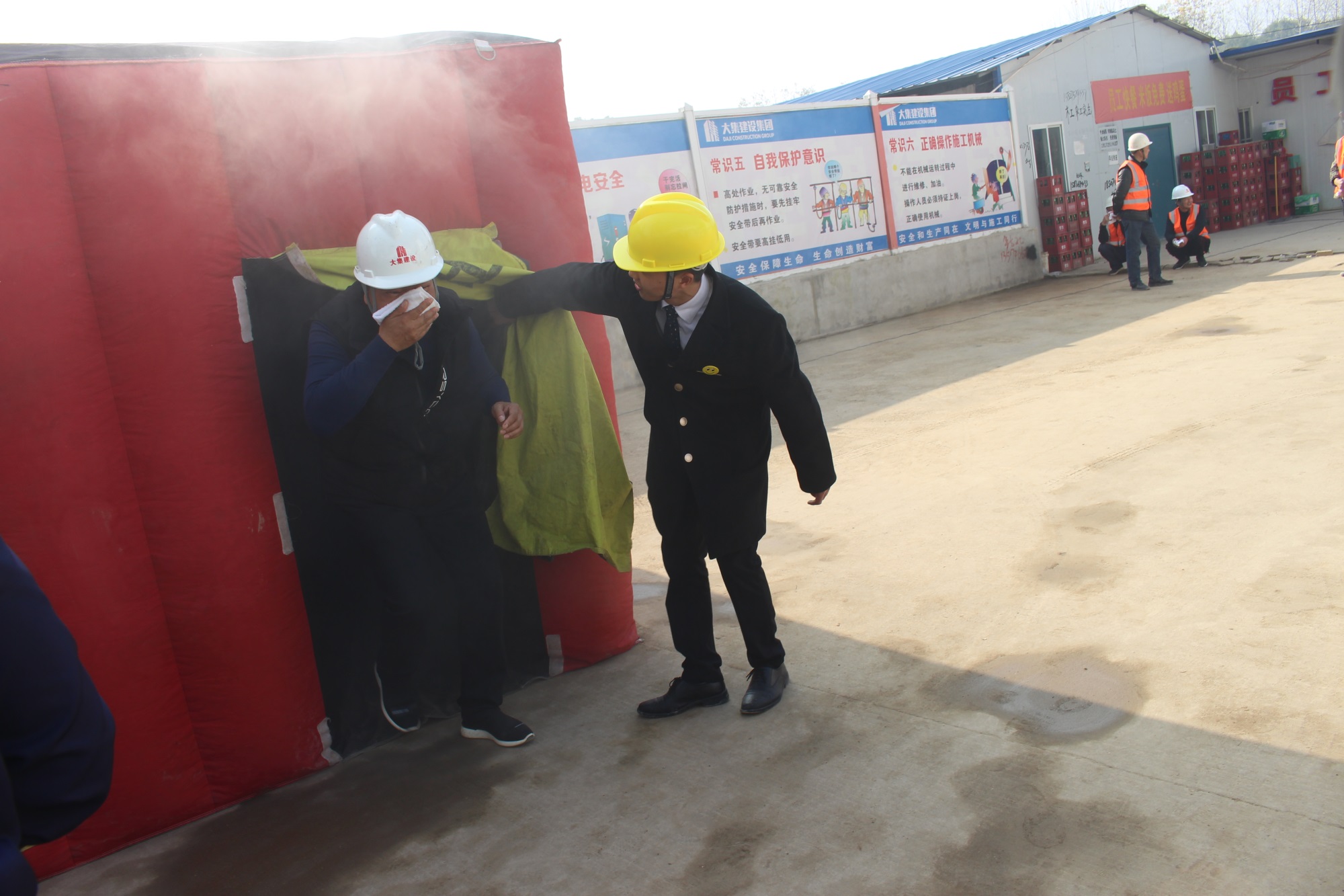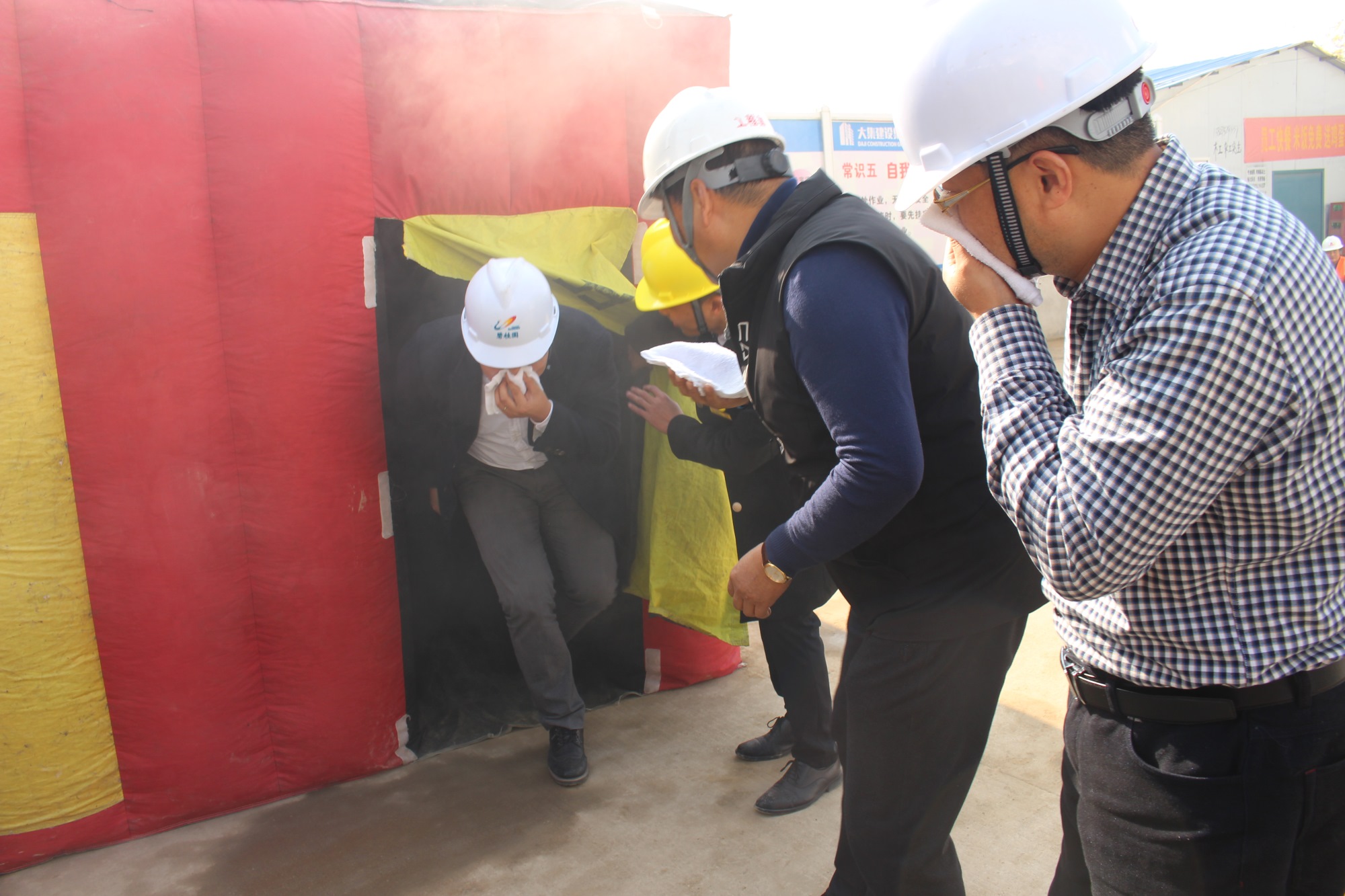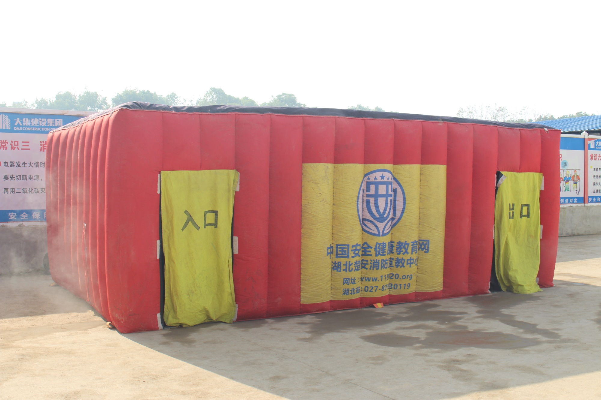 隨后,湖北楚安消防宣教中心王好主任帶領大家共同體驗了應急帳篷,應急帳篷模擬了火災煙霧及火災的陰暗環(huán)境,現場人員在王主任的指導下有秩序地進入帳篷進行體驗。