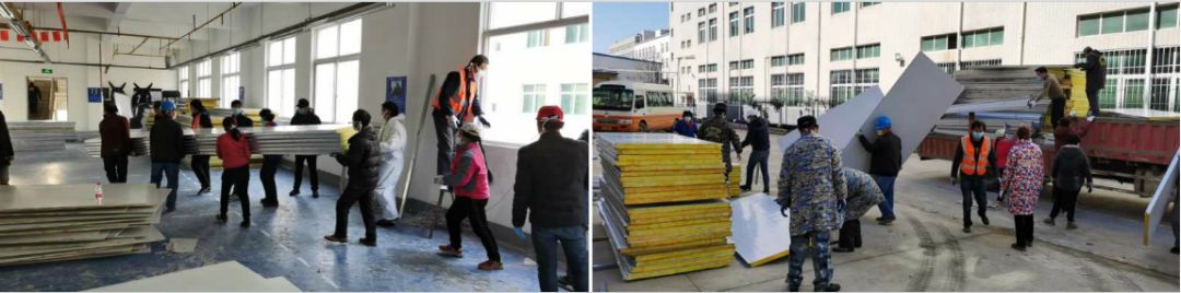 沒有條件創(chuàng)造條件,沒有人員就自己先頂上,想盡一切辦法,發(fā)動一切力量,上下齊心,團結(jié)一致,只為和時間賽跑!疫情當(dāng)前,時間就是生命,提前一分鐘交工,就能提前一分鐘投入使用,就能提前一分鐘救治人命,這份責(zé)任感和緊迫感,一直支持著大家不懼危險,不懼風(fēng)雪,不懼困難,爭分奪秒地為防疫攻堅戰(zhàn)搶建起一座生命方舟!
