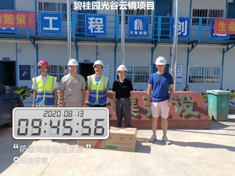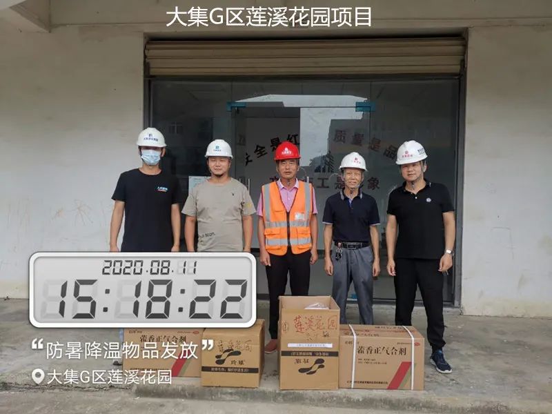 大集G區(qū)蓮溪花園項目、大集街農(nóng)村污水治理項目、大集景綠網(wǎng)紅特色小鎮(zhèn)項目、世茂龍灣47#號地塊別墅樓工程、黃星大道加油站項目、年產(chǎn)80萬套總成項目、常貴路西延伸段項目、泰禾君悅花園項目、碧桂園光谷云鏡項目……每到一處,集團工程部都會將購買好的毛巾、風油精、人丹、十滴水、藿香正氣水、蚊不叮等防暑降溫物資送到項目人員手中,并要求各項目部一定要把施工人員的身體健康放在首位,要在全力以赴抓質(zhì)量、搶進度、創(chuàng)佳績的同時,嚴格按照國家有關規(guī)定,把防暑降溫工作落實好、做到位,要根據(jù)天氣氣溫的變化,合理安排工作時間,作好安全預防措施、備足防暑降溫物質(zhì),讓員工們安全度過高溫天氣。