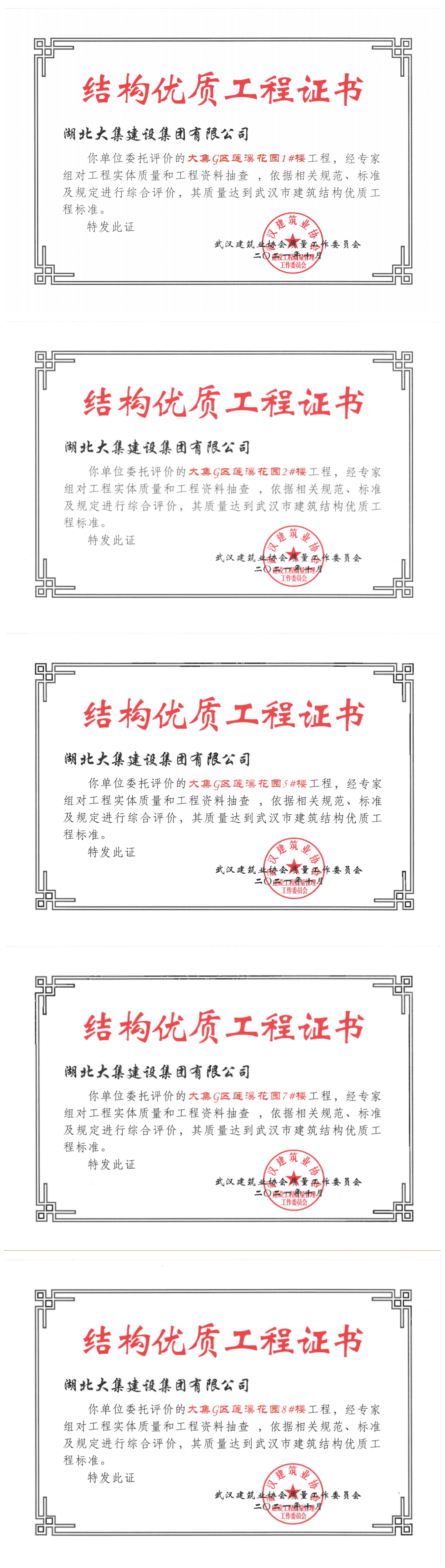 近日,由湖北大集建設(shè)集團(tuán)承建的大集G區(qū)蓮溪花園項目1#、2#、5#、7#、8#樓榮獲“武漢市建筑結(jié)構(gòu)優(yōu)質(zhì)工程”榮譽。