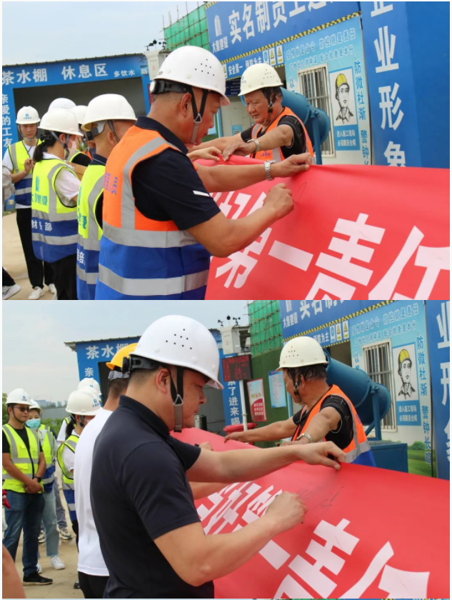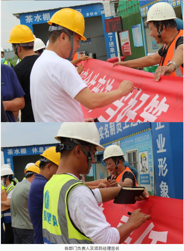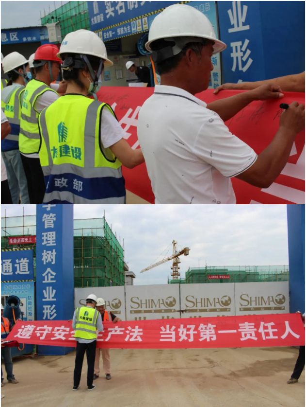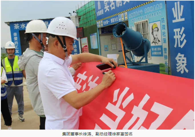 活動(dòng)開始,集團(tuán)董事長徐濤、副總經(jīng)理徐家富及各部門負(fù)責(zé)人、各項(xiàng)目經(jīng)理率先在“遵守安全生產(chǎn)法,當(dāng)好第一責(zé)任人”條幅上鄭重簽名,寫下對肩負(fù)安全生產(chǎn)責(zé)任的承諾,隨后各項(xiàng)目施工員、安全員紛紛在條幅上寫下自己的名字,表達(dá)對做好安全生產(chǎn)相關(guān)工作的信心和決心。