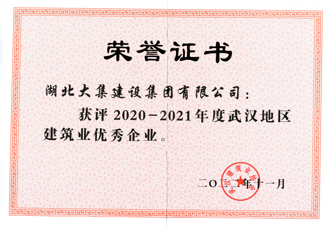 喜報| 湖北大集建設(shè)集團榮獲武漢地區(qū)建筑業(yè)優(yōu)秀企業(yè)榮譽