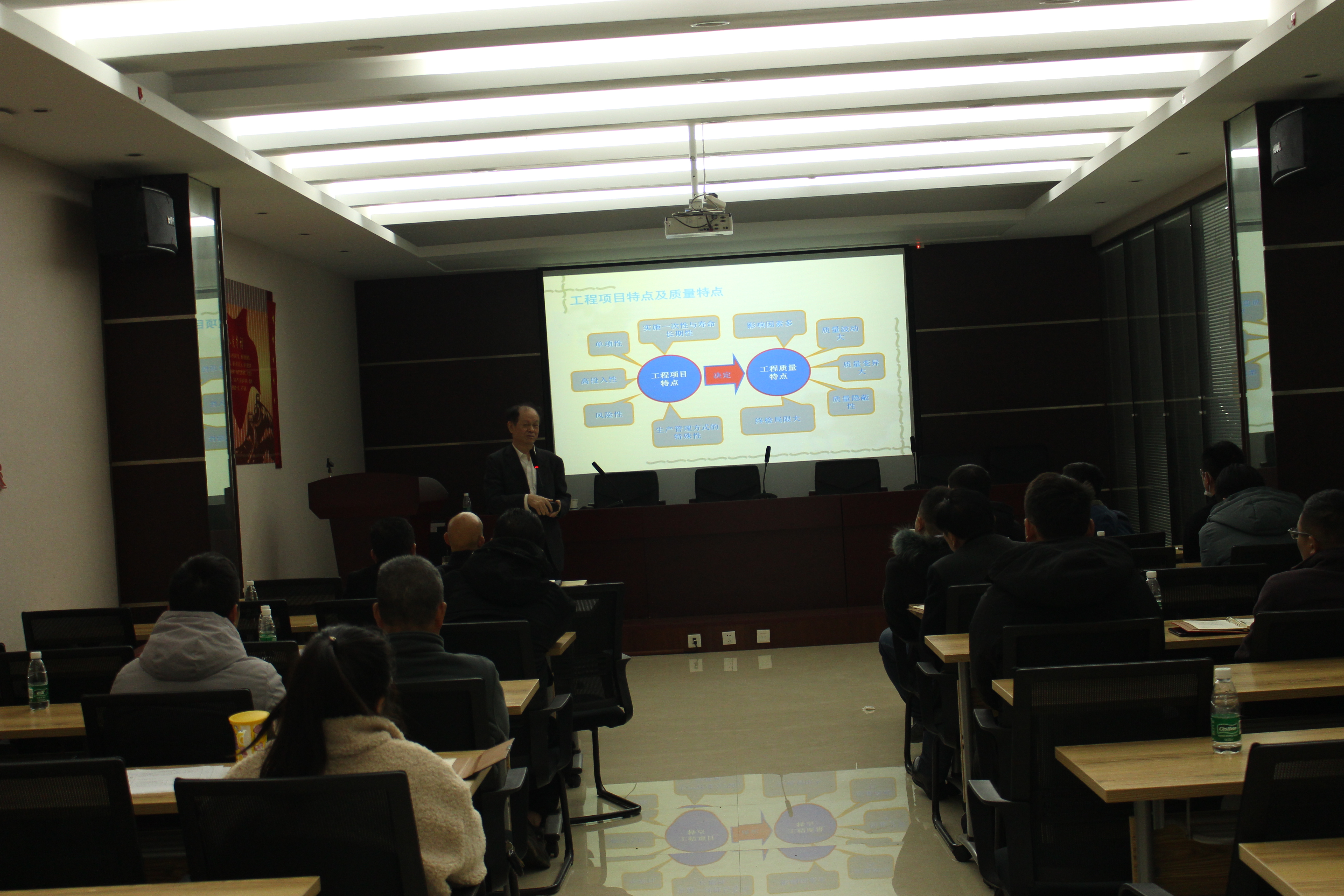 主講老師從工程師之戒·上世紀(jì)十大技術(shù)失誤、對(duì)工程師或未來的工程師的幾點(diǎn)善意忠告、施工項(xiàng)目質(zhì)量控制原理三個(gè)方面進(jìn)行授課。著重講解了工程建設(shè)程序、施工質(zhì)量控制的概念和原理、工程施工質(zhì)量控制、施工質(zhì)量控制的統(tǒng)計(jì)分析、質(zhì)量管理體系標(biāo)準(zhǔn),并強(qiáng)調(diào)建筑工程應(yīng)遵循“材料是基礎(chǔ)、設(shè)計(jì)是前提、施工是關(guān)鍵、管理是保證”的原則。授課中,老師理論結(jié)合實(shí)際、課件圖文并茂、內(nèi)容豐富易懂,講解清晰透徹,參訓(xùn)員工受益匪淺。