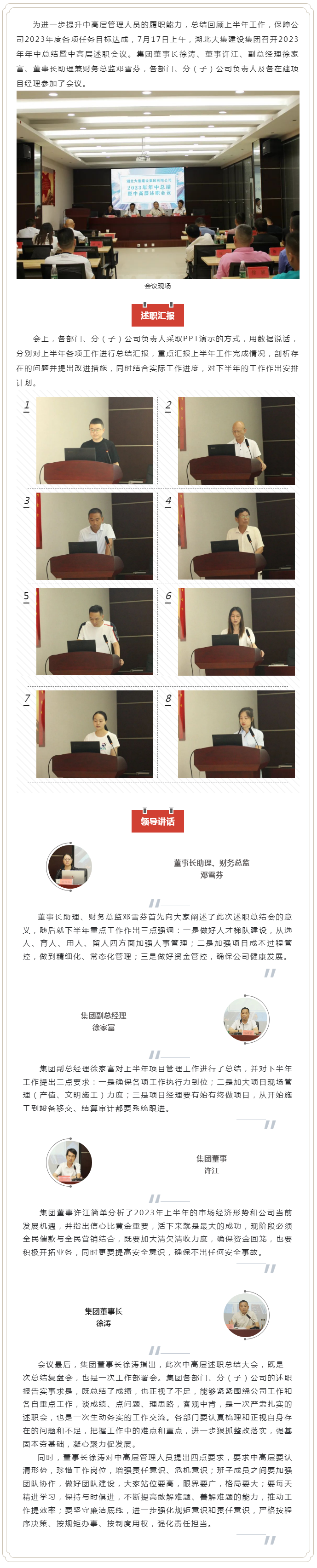述職總結(jié)強(qiáng)管理 凝心聚力共奮進(jìn)|集團(tuán)公司召開2023年年中總結(jié)暨中高層述職會(huì)議