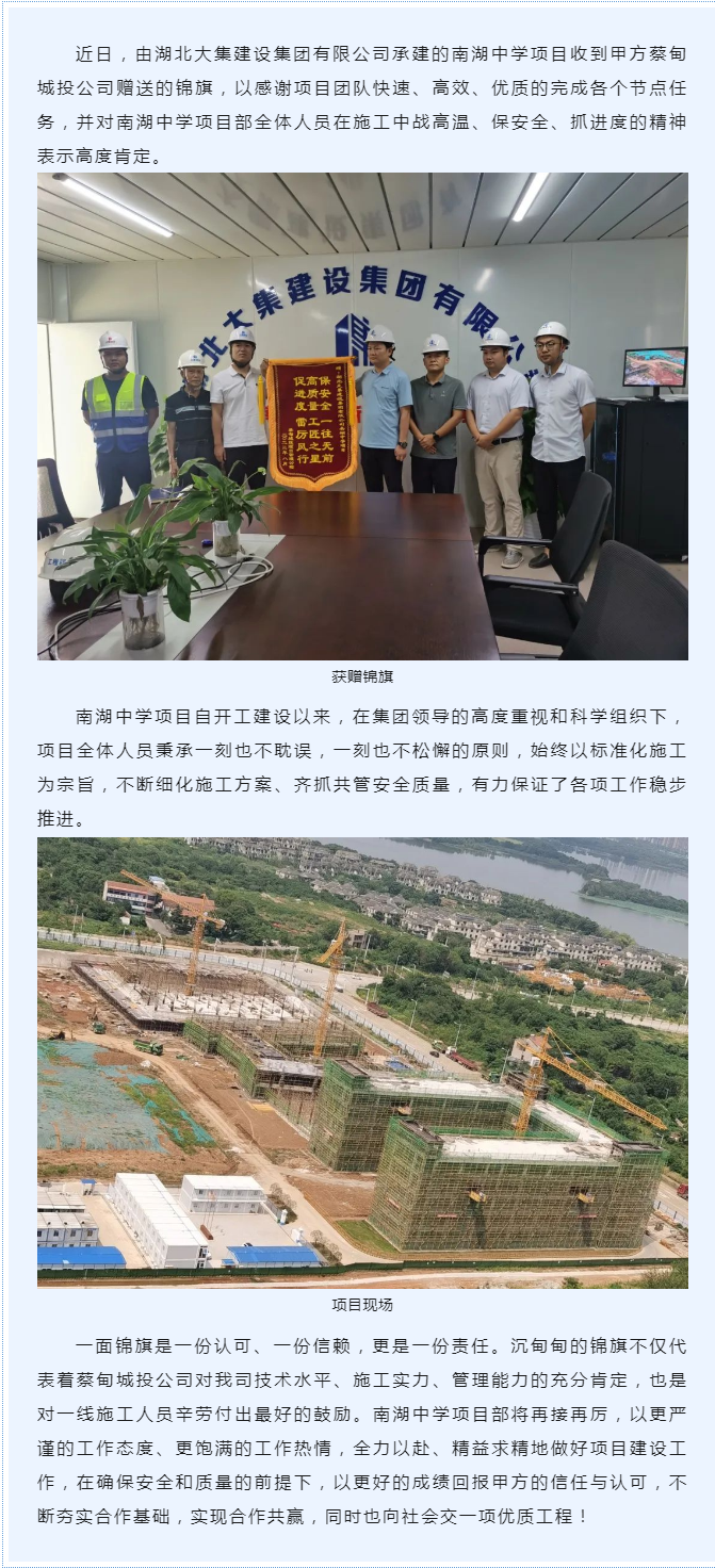精心施工贏贊譽,甲方單位送錦旗|南湖中學(xué)項目獲贈錦旗