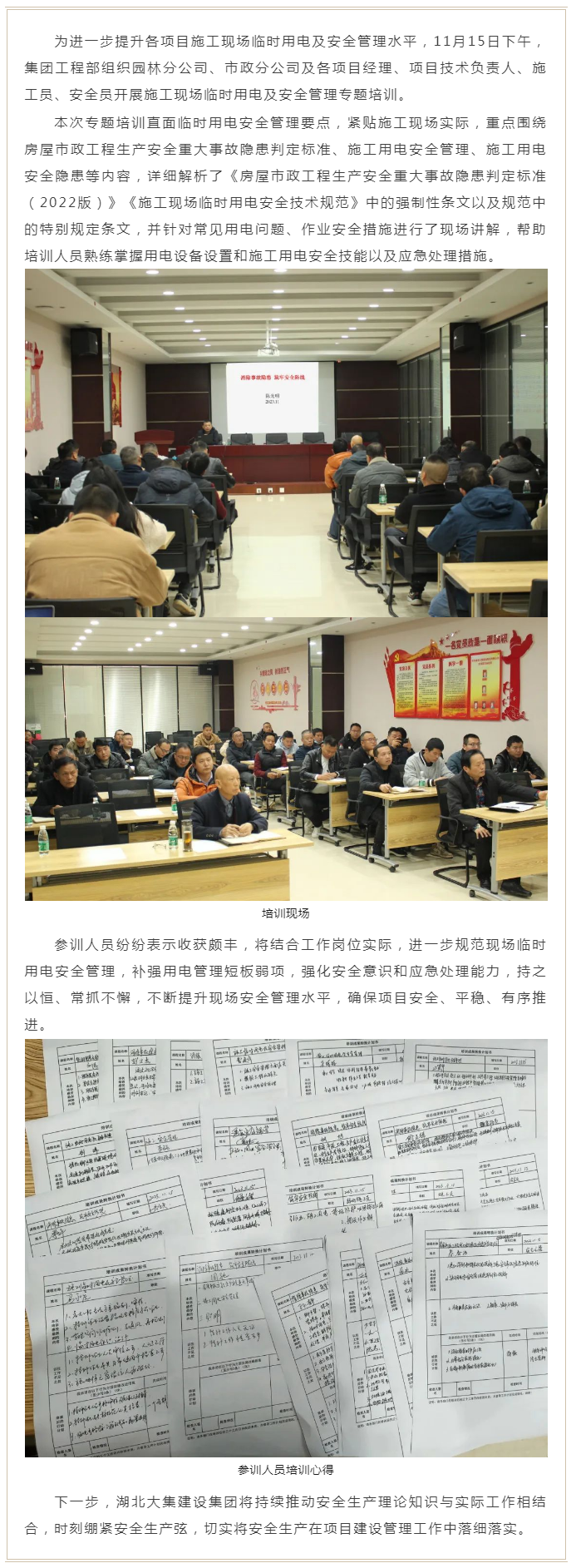 集團(tuán)公司開展施工現(xiàn)場(chǎng)臨時(shí)用電及安全管理專題培訓(xùn)