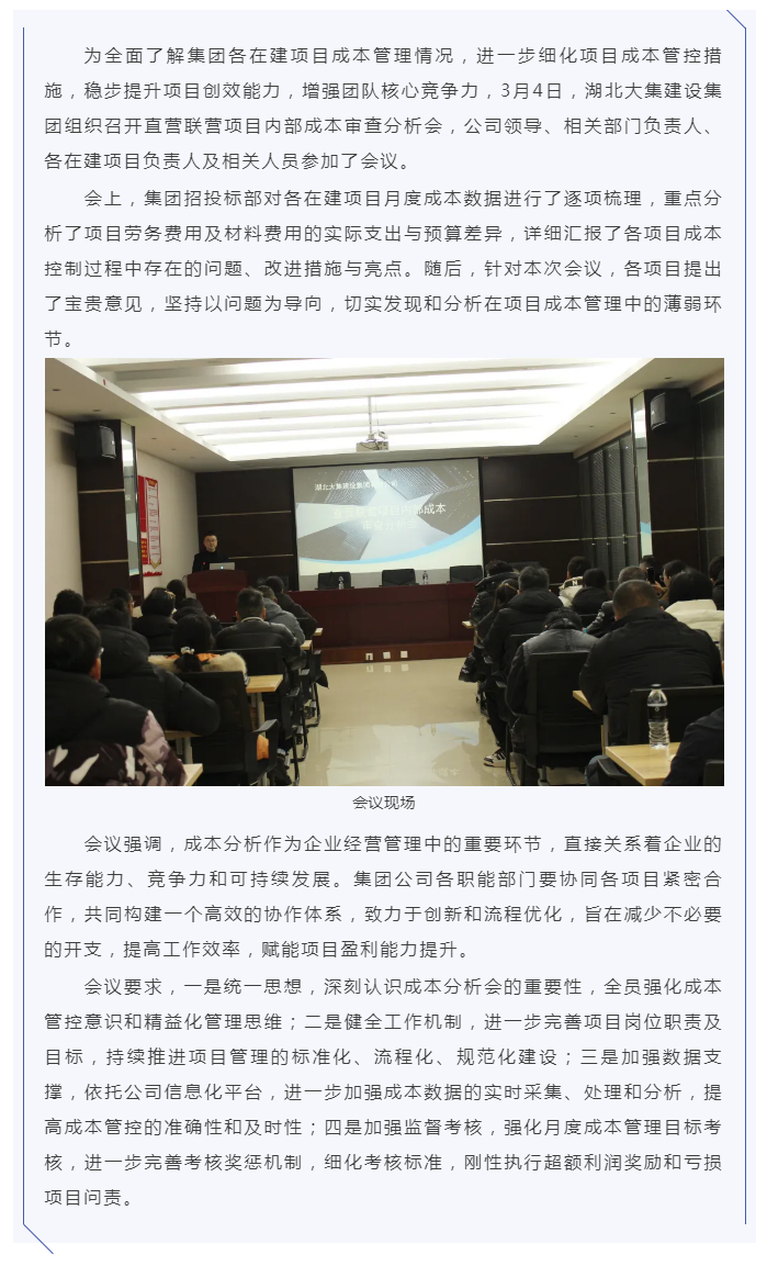 成本管控|湖北大集建設(shè)集團(tuán)召開項(xiàng)目內(nèi)部成本審查分析會