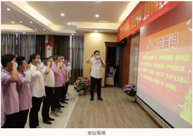 會(huì)議開(kāi)始,湖北大集建設(shè)集團(tuán)黨支部書(shū)記徐遠(yuǎn)征同志帶領(lǐng)全體黨員重溫入黨誓詞。在徐遠(yuǎn)征同志領(lǐng)誓下,全體黨員舉起右拳,莊嚴(yán)宣誓,鏗鏘有力的聲音,久久響徹耳邊,共同表達(dá)了不忘初心,牢記使命,永遠(yuǎn)奮斗的堅(jiān)定決心。