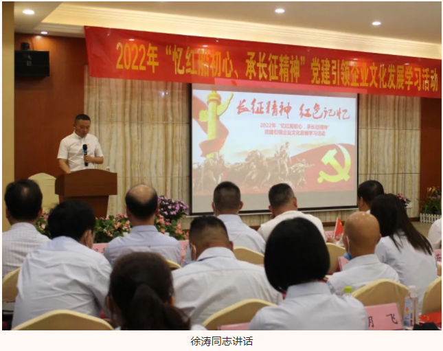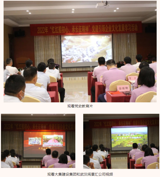 為慶祝建黨101周年,進(jìn)一步推進(jìn)黨史學(xué)習(xí)教育,增強(qiáng)隊(duì)伍凝聚力、向心力與戰(zhàn)斗力,湖北大集建設(shè)集團(tuán)聯(lián)合武漢閱景匯公司于6月16日上午共同開(kāi)展2022年“憶紅船初心,承長(zhǎng)征精神”黨建引領(lǐng)企業(yè)文化發(fā)展學(xué)習(xí)活動(dòng),兩家公司的全體黨員、入黨積極分子以及中高層領(lǐng)導(dǎo)、優(yōu)秀骨干員工參加了學(xué)習(xí),會(huì)議由湖北大集建設(shè)集團(tuán)黨支部書(shū)記徐遠(yuǎn)征主持。