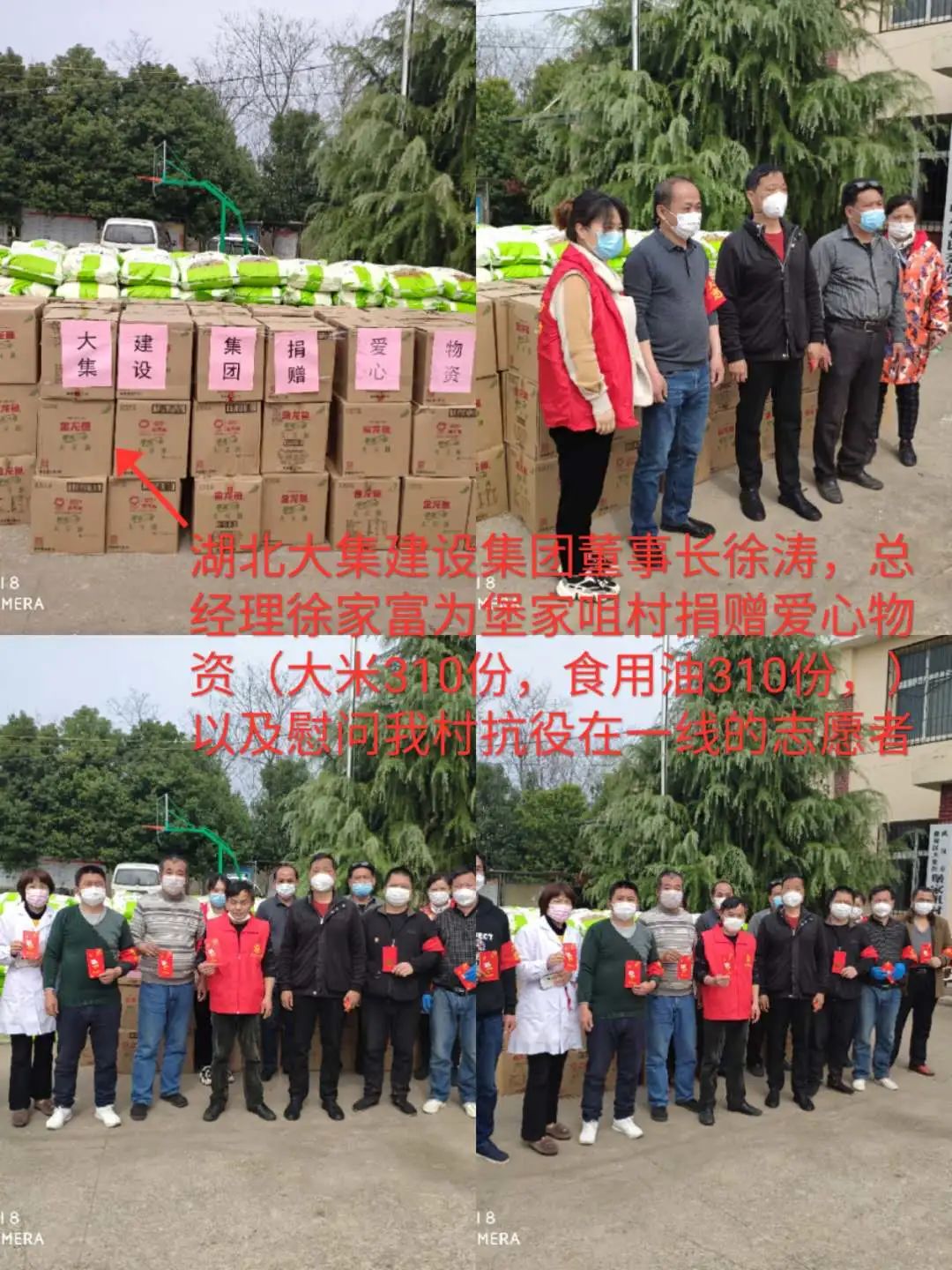 徐總代表集團慰問一線志愿者,代表集團向堡家嘴村每家每戶捐贈50斤大米、5升油,物資累計價值12萬元