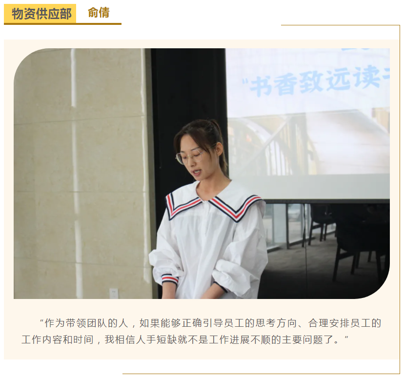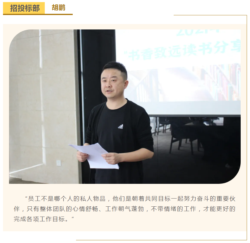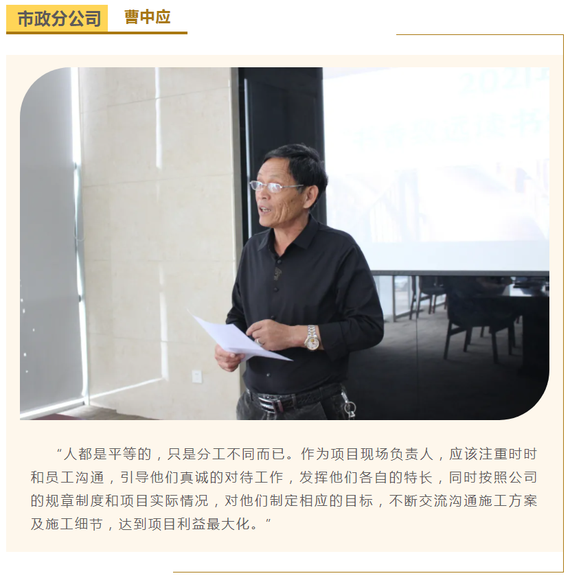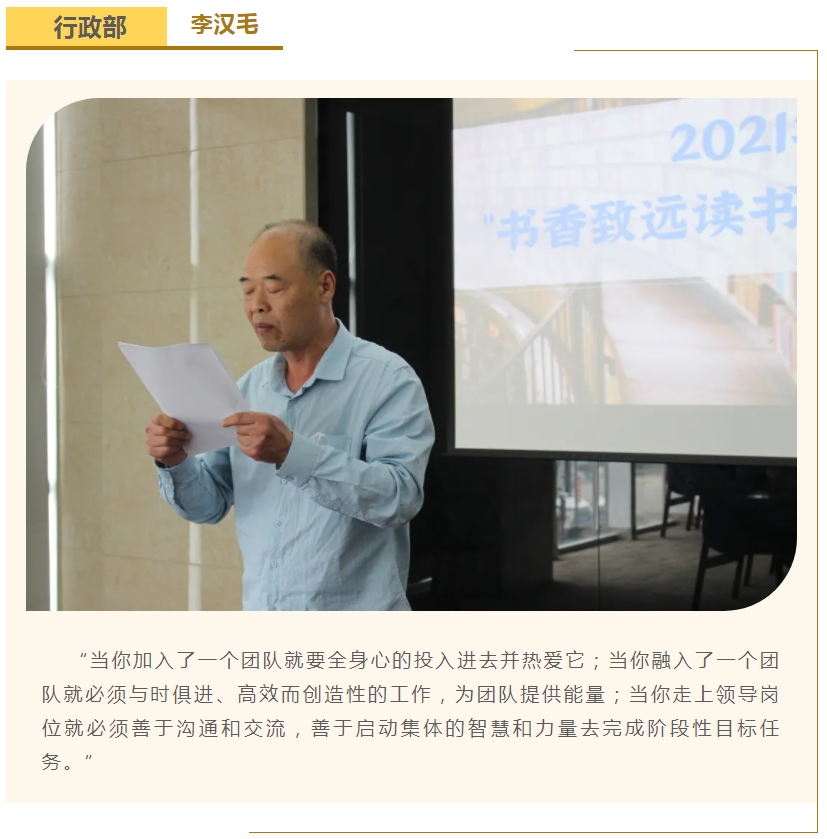此次中高層領(lǐng)導共讀并分享的書籍是《麥肯錫團隊管理法》,集團公司七位部門負責人依次上臺,結(jié)合各自的實際工作、管理經(jīng)驗等,對書中的觀點進行闡述與分析。在思想交流碰撞中,各位部門負責人進一步加深了對團隊管理的認識,反思了自己在部門管理中存在的問題,了解了更多的管理細節(jié),學習了更有效的管理方法,為今后更好地完成日常管理工作打下了堅實的基礎(chǔ)。