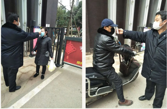 認(rèn)真對(duì)出入口人員進(jìn)行體溫檢測(cè)、信息登記