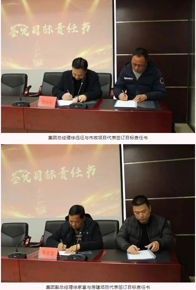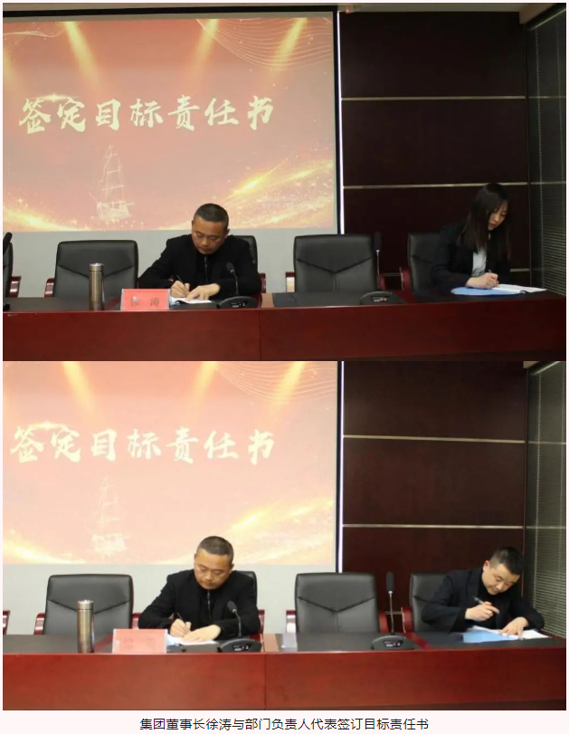 在2024年目標(biāo)責(zé)任書簽訂儀式上,集團(tuán)董事長、總經(jīng)理、副總經(jīng)理依次與部門負(fù)責(zé)人代表、項目代表簽訂目標(biāo)責(zé)任書。責(zé)任書不僅僅是一紙文件,它承載著集團(tuán)的期望與信任,代表著責(zé)任與擔(dān)當(dāng),猶如千鈞之重。