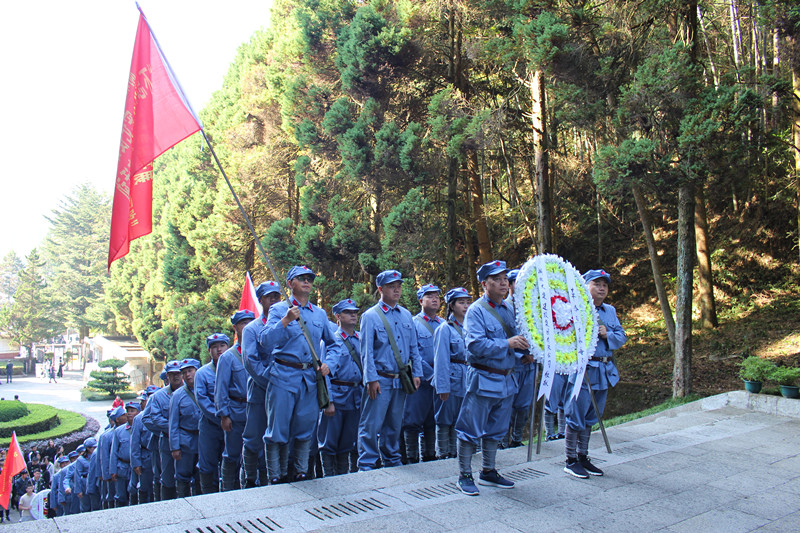在井岡山革命烈士陵園,學(xué)員們懷著崇高的敬意向革命英烈敬獻(xiàn)花圈,肅立默哀,感悟先烈追求理想信念,不怕犧牲的崇高品質(zhì)。