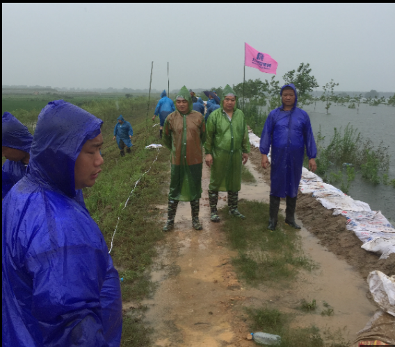 雨不停地在下,水不停地漲,水位超過(guò)了警戒線。桐湖堤防邊抗洪搶險(xiǎn)形勢(shì)異常嚴(yán)峻,王洪波、周勝書兩位項(xiàng)目經(jīng)理彰顯男兒本色,一邊跟戰(zhàn)斗在第一線的同志們鼓舞打氣,告訴大家:“前方勇士請(qǐng)堅(jiān)持,后續(xù)部隊(duì)馬上到”、“我們來(lái)了六十五人的大團(tuán)隊(duì)”,另一邊率領(lǐng)項(xiàng)目人員組成的后援大軍支援到第一線。